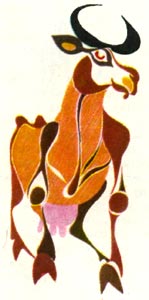 У антилопы гну есть что-то бычье, гривой и хвостом похожа она на лошадь, а странным и несуразным своим видом — на фантастического фавна. В Африке два вида гну — белохвостый, почти истребленный, уцелело их немного в Юго-Западной Африке, и полосатый, или голубой. У этого два подвида: чернобородый (Южная Африка) и белобородый (Восточная Африка). Гну, как и сайгаки, природные иноходцы.