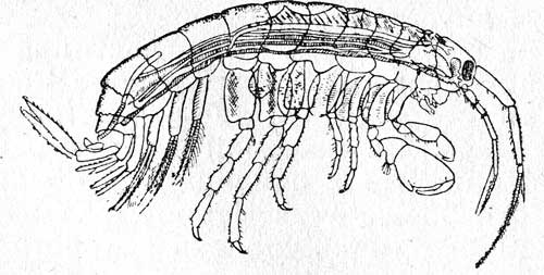 Высшие ракообразные (Malacostraca)Высшие ракообразные отличаются от низших постоянным числом сегментов тела, равным 15-ти, причем первые 8 сегментов - грудные - всегда резко отличаются от задних 7-ми - брюшных. Обычно они значительно крупнее низших. Большинство их живет в воде, хотя есть и некоторые наземные формы. В пределах Ростовской обл. встречаются представители пяти отрядов высших ракообразных, а именно: flmphipoda - бокоплавы, Cumacea - кумацеи, Mysidae - мизидовые, Isopoda - равноногие, Decapoda - десятиногие. Прежде чем перейти к описанию отдельных отрядов, следует остановиться на особенностях фауны высших ракообразных Ростовской обл., обусловленных геологическим прошлым бассейна р. Дона. Дело в том, что в пресных и вообще внутренних водоемах высшие ракообразные обычно представлены очень бедно - в противоположность морям, где они очень многочисленны. В пресных водах обычно встречается лишь по одному виду из бокоплавов, равноногих и десятиногих, а остальные отряды отсутствуют совершенно. Между тем, в водоемах области и особенно в Дону обитают многочисленные представители бокоплавов, мизид и кумацей явно морского происхождения. Это интересное явление объясняется следующим. В конце третичного периода на месте Каспийского, Азовского и Черного морей существовало одно слабосоленое море - так называемое Сарматское, не связанное со Средиземным и имевшее своеобразную фауну, отличавшуюся от фауны других морей. В дальнейшем Сарматское море разделилось на две части: восточную и западную. Из восточной части возникло современное Каспийское море, оставшееся замкнутым и сохранившее в почти нетронутом виде древнюю фауну Сарматского моря. Из западной части образовались Азовское и Черное моря. Черное море соединилось проливом со Средиземным. В результате этого соединения Черное и Азовское моря наполнились водами Средиземного моря, уровень которого был выше. Сильно соленые средиземноморские воды, имевшие другой химический состав, нормальный для всех вообще океанов, были населены обычной морской фауной, которая в массовых количествах проникла в Черное и Азовское моря и заселила их почти сплошь. Древняя своеобразная фауна Сарматского моря погибла в новой для нее среде и сохранилась лишь в сильно опресненных лиманах и участках Черного и Азовского морей, прилегающих к устьям рек, или была оттеснена в низовья рек, приспособившись к совершенно пресным водам. В результате в низовьях Дона, Днепра и других рек Азовско-Черно-морского бассейна мы находим большое количество морских по происхождению форм, резко отличающихся от обычной морской фауны (в том числе и от фауны открытых частей Азовского и Черного морей) и совпадающих с современной фауной Каспийского моря. Эти формы в условиях Дона и Азовского моря считаются сарматскими "реликтами", т. е. остатками фауны древнего моря, и являются по существу живыми ископаемыми - свидетелями давно прошедших геологических эпох. Кроме перечисленных групп высших ракообразных, к сарматским реликтам относятся также некоторые моллюски и черви. Замечательно, что большинство реликтовых форм концентрируется почти исключительно в Дону, а в дельте Дона придерживается ее главных рукавов с ясно выраженным речным режимом (течением). В стоячих и заросших водоемах, в пойменных озерах и болотах реликты встречаются редко (только 2-3 форм