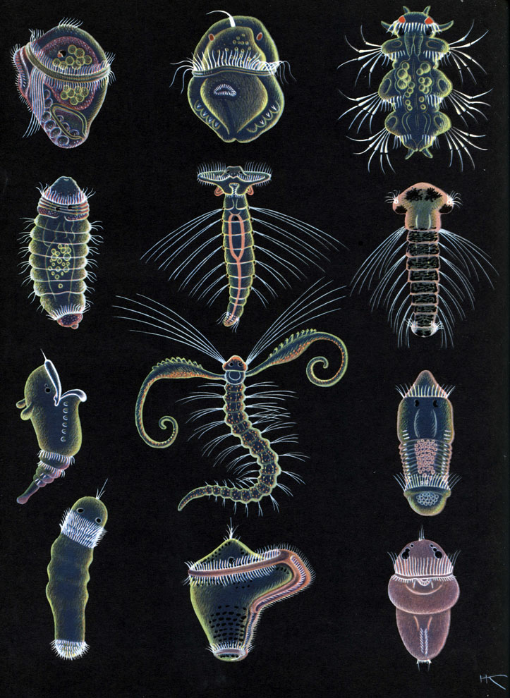 Попав к своему хозяину, личинка прикрепляется к телу его в месте своего обитания, сбрасывает ресничный покров и, переходя к паразитическому образу жизни, начинает расти, превращаясь постепенно во взрослую форму.
