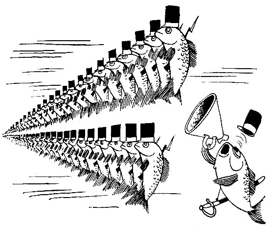 Подводный осциллограф - находка для парапсихологии. Тот, кому доводилось наблюдать в море за поведением типично стайных рыб: ставриды, скумбрии, зубариков, - вероятно, не раз восхищался слаженностью маневров стаи, когда десятки, сотни или даже тысячи рыб одновременно как по команде меняют направление движения. Кто дает эту команду, как она передается, ученые пока не знают. Возможно, для "передачи мыслей" на расстояние рыбы пользуются слабыми электросигналами. Ведь биотоки возникают во всех мышцах и нервах и еще раньше в мозгу, который посылает в рабочие органы свои приказы. Эти распоряжения могут передаваться и за пределы рыбы, ведь морская вода отличный электропроводник.