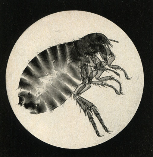 Отряд блох (Aphaniptera, или Siphonaptera) по принятой в настоящее время классификации завершает систему насекомых. И это не потому, что организм их наиболее совершенен, а по той причине, что определить их родственные связи с другими группами очень непросто. Выдвигалось предположение, что блохи произошли от предков мух, другие утверждали, что их предками были жуки или сетчатокрылые, однако к окончательному решению ученые до сих пор не пришли. Описано более тысячи видов блох. Они паразитируют на млекопитающих и птицах во всем мире. Вверху изображена широко известная человечья блоха (Pulex irritans), самка длиной около 3 мм. Этот вид паразитирует на собаках, кошках и на нечистоплотных людях. Поскольку эта же блоха живет также на крысах и пасюках, то в некоторых странах при вспышке чумы среди зверьков она может заразить чумой человека. Типичным переносчиком азиатской чумы является живущая на крысах блоха, Xenopsylla cheopis, достигающая всего-навсего 2 мм в длину. На снимке изображен самец вида. Эта блоха, перенося чуму между грызунами, может напасть и на человека. Это она несет ответственность за катастрофические эпидемии чумы в Средние века. При большой эпидемии 1348-1350 гг. "черная смерть" только в Европе унесла 25 миллионов жизней. В Индии в 1898- 1918 гг. погибло от чумы более 10 миллионов человек.