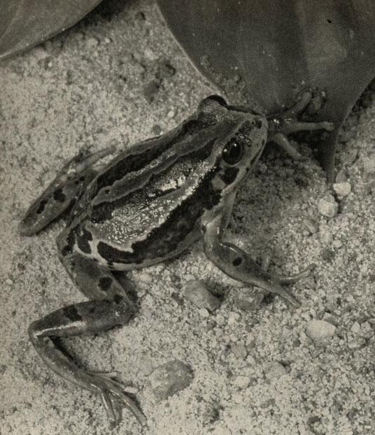 Внизу показана парочка остромордых лягушек (Rana arvalis), Они распространены в Средней и Северной Европе, а в Северной Азии заходят кое-где за полярный круг. Эти ночные животные водятся на торфяных болотах, на заливных лугах и полях вдали от водных систем. Они отличные прыгуны (2-кратное увеличение).