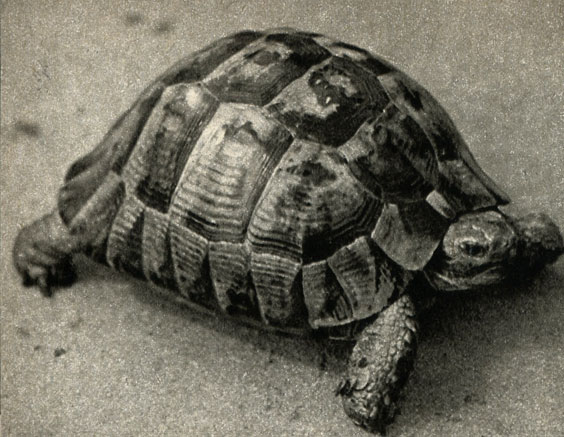 Вверху - окаймленная черепаха (Testudo marginata), живущая в Южной Греции и Малой Азии. Длина ее панцыря - около 30 см.