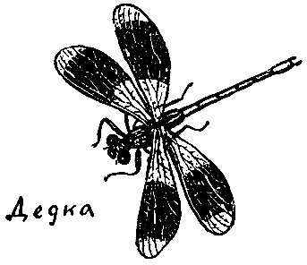 Прошли годы, и я научился - вернее, меня научили - ловить самых осторожных и проворных стрекоз. Наши великаны из стрекозиного мира - коромысла и дозорщики, громадная кольчатая стрекоза, бронзово-зеленые бабки и дедки - все они сделались легкой добычей.