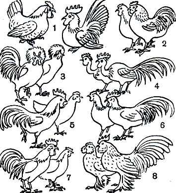 Многие куриные, и в первую очередь серая куропатка, истребляют вредных для сельского хозяйства насекомых, принося тем самым значительную пользу. Но наиболее велико значение куриных в качестве домашних сельскохозяйственных птиц. Дикие виды куриных послужили источником для выведения разнообразных домашних пород, дающих мясо, перо, яйца (табл. 27, 28). Представители куриных - куры, индейки, цесарки - составляют основу такой важной отрасли сельского хозяйства, как птицеводство.