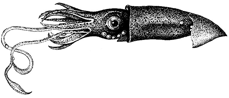 Многие из кальмаров невелики по размерам. Таков, например, очень обычный в наших дальневосточных морях тихоокеанский кальмар Ommastrephes sloanei pacificus, которого японцы добывают по 700 тыс. т в год. Но есть среди кальмаров и настоящие гиганты, встреча с которыми не сулит человеку ничего хорошего. О них сложено много легенд, но долгое время гигантские кальмары, или архитевтисы (Architeuthis), не попадались в руки зоологов, и ученые уже начали было сомневаться, существуют ли они в действительности.