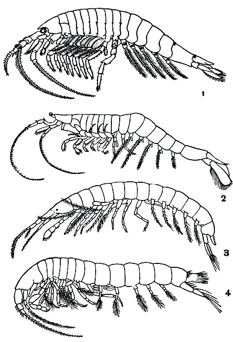 В отличие от тонкопанцирных они полностью лишены карапакса. Все их грудные и брюшные сегменты имеют сходное строение и приблизительно одинаковые размеры. Грудные ножки двуветвисты. Конечности последнего брюшного сегмента преобразованы в рулевые ноги - так называемые уроподы. Левая и правая жвалы симметричны. Самки откладывают яйца в воду и не носят их на себе.